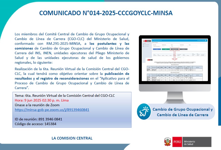 COMUNICADO N°014-2025-CCCGOYCLC-MINSA