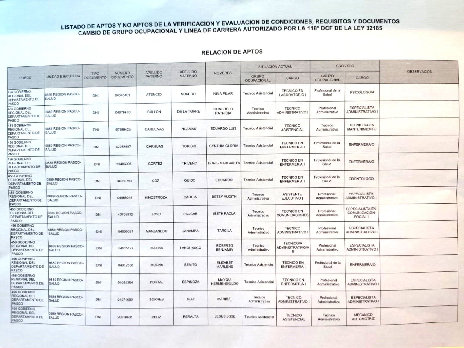 RESULTADOS FINAL DE APTOS Y NO APTOS AL PROCESO DE ASCENSO, EN EL MARCO DEL ARTICULO 51 DE LA LEY N° 32185 RELACION DE APTOS ☑️🆕
